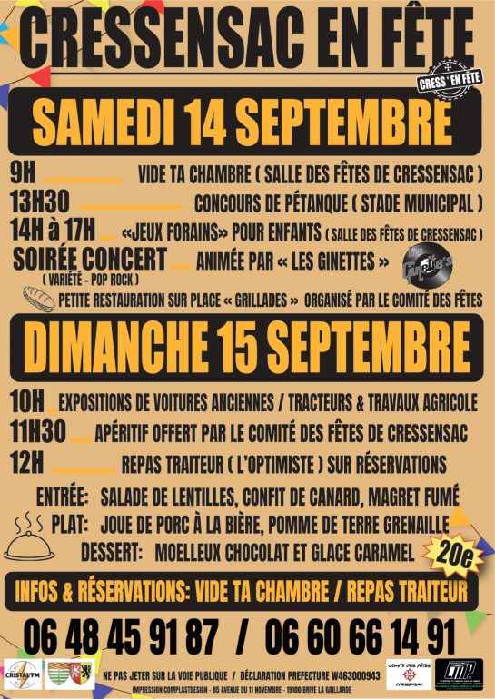 CRESSENSAC est en FÊTE les 14 et 15 septembre !!!