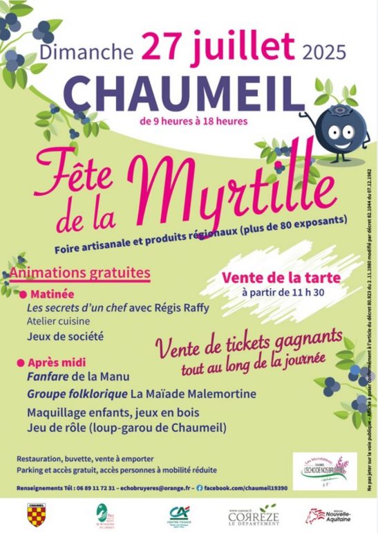 Dimanche 27 juillet, direction Chaumeil en Corrèze pour la savoureuse… Fête de la Myrtille !