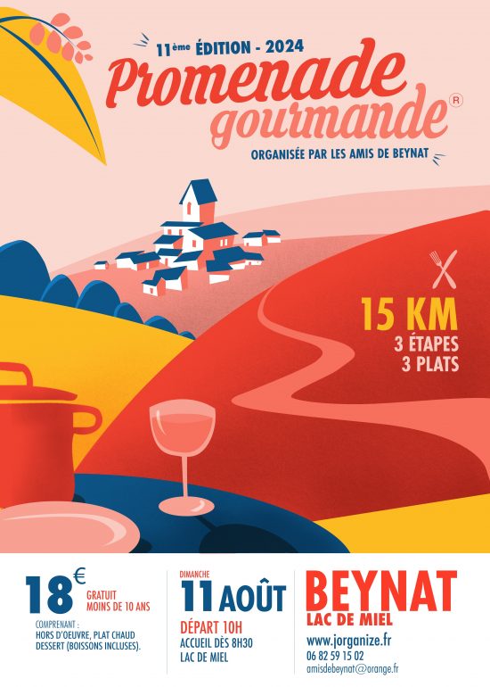 Les Amis De Beynat vous proposent leur 11e PROMENADE GOURMANDE® (PG 24) Du lac de Miel au lac de Miel le dimanche 11 août 18 € repas et boissons comprise (gratuit moins de 10 ans). Ne tardez pas à vous inscrire ! 15 Km de balade paisible et familiale, sans chrono ni performance tout au long des plus beaux chemins du Pays de Beynat avec 3 étapes gourmandes 15 Km du lac de Miel au lac de Miel Accueil entre 8h30 […]