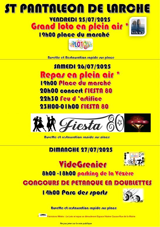 De nombreuses activités vous attendent à Saint Pantaléon de Larche les 25, 26 et 27 juillet !!