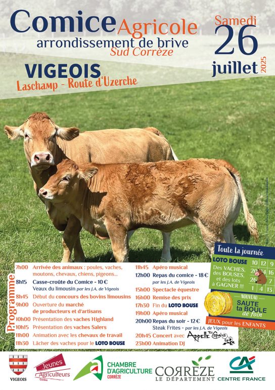 Samedi 26 juillet, rendez-vous à Vigeois pour le Comice Agricole du Sud-Corrèze !